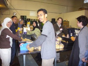 Di sini kami berpeluang melakukan kerja sukareladengan membungkus ’snek’ ke dalam plastik untuk diedarkan kepada golongan yang memerlukan. Sungguh menakjubkan apabila melihat bersama-sama dengan kami terdapat seorang sukarela yang lanjut usia dalam pertengahan umur 60 an yang sudah sedikit bongkok serta tidak mampu berjalan dengan baik dan seorang wanita yang mempunyai IQ yang rendah tetapi masih tetap juga bersemangat melakukan kerja sukarela.