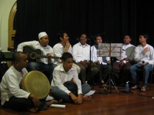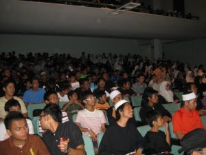 Kejutan yang saya maksudkan ialah sesi semalam melibatkan pementasan lakonan pentas atau teater bertemakan Quran Petunjuk Buat Manusia (juga tema bagi RYC tahun ini) hampir sejam setengah ini melibatkan pelakon rata-rata daripada para asatizah muda! Ia disertai dengan alunan muzik live dan nyanyian latar oleh Ustaz Sofyan (Imam Eksekutif Masjid Mydin). Power kan? Memang power gilerr!!! Teringat pulak saya macam film There’s Something About Mary.