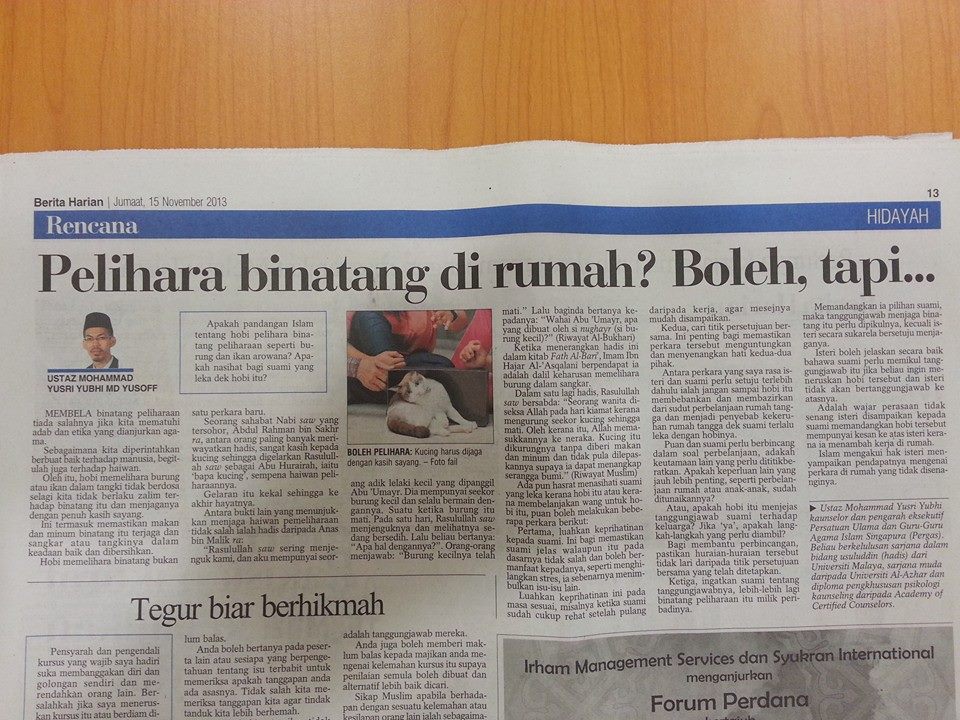 Nota: Artikel kemusykilan agama ini telah diterbitkan dalam ruangan Hidayah Berita Minggu Singapura pada 15 November 2013.